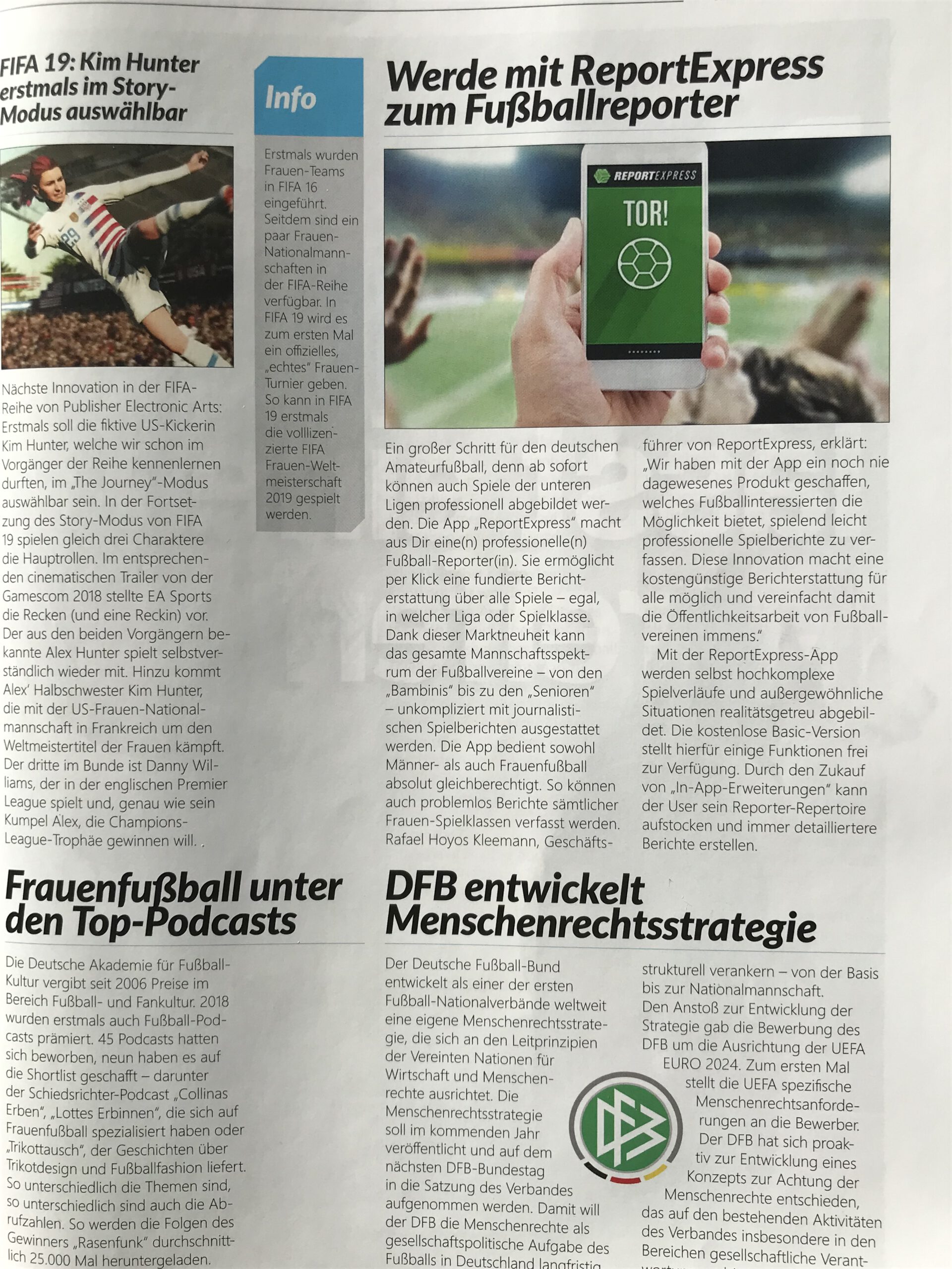 Auch der Frauenfußball hat die Vorzüge unserer App erkannt und berichtet über uns im FFussball-Magazin. Herzlichen Dank!